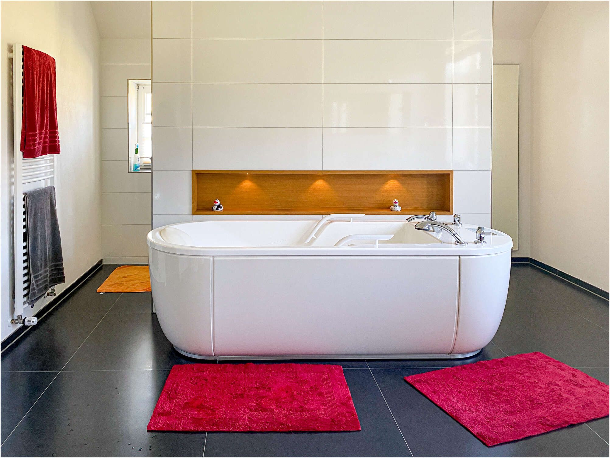 Dem Wohnbereich angegliedert ist die Gästetoilette, der Hauswirtschaftsraum, die offene Küche, die keine Wünsche offen lässt. Das Badzimmer mit eingebauter Sauna und Massagewanne und das großzügige Schlafzimmer befindet sich im hinteren Teil des Gebäudes.